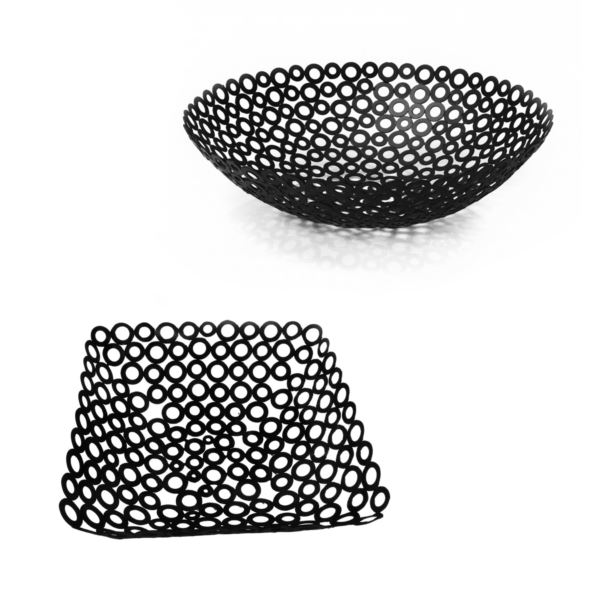 *Make A Choice That Makes A Difference* Set includes a round as well as a square bowl handcrafted in India from recycled iron washers. Each is 11" in diameter. Black. HHP lifts communities by creating sustainable livelihoods and job opportunities for people with barriers to employment. Proceeds support helping hand ARTISANS, HHP's global artisan network. Benefits have included clean water, free education, safe transportation, micro-loans, disaster relief, and more. Socially Responsible, Fair Trade Practice, Green