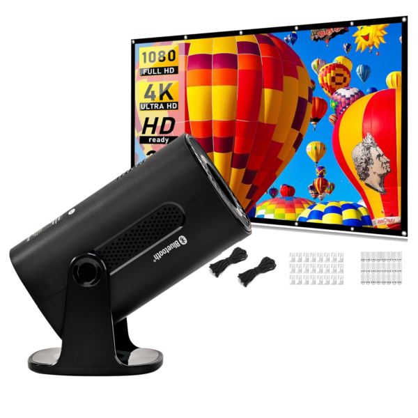 Bring your favorite movies, sports, and TV shows to life with this advanced LCD projector, delivering vibrant 720p visuals on screens up to 120 inches. With HDMI, USB, and Bluetooth connectivity for external speakers, it's perfect for seamless entertainment. Enjoy private listening through the headphone jack or immersive sound from the built-in speaker. With a long-lasting LED bulb and a user-friendly remote, this compact projector transforms any space into a personal theater. Includes 120 inch Portable Indoor Outdoor Projection Screen Wrinkle-Free.